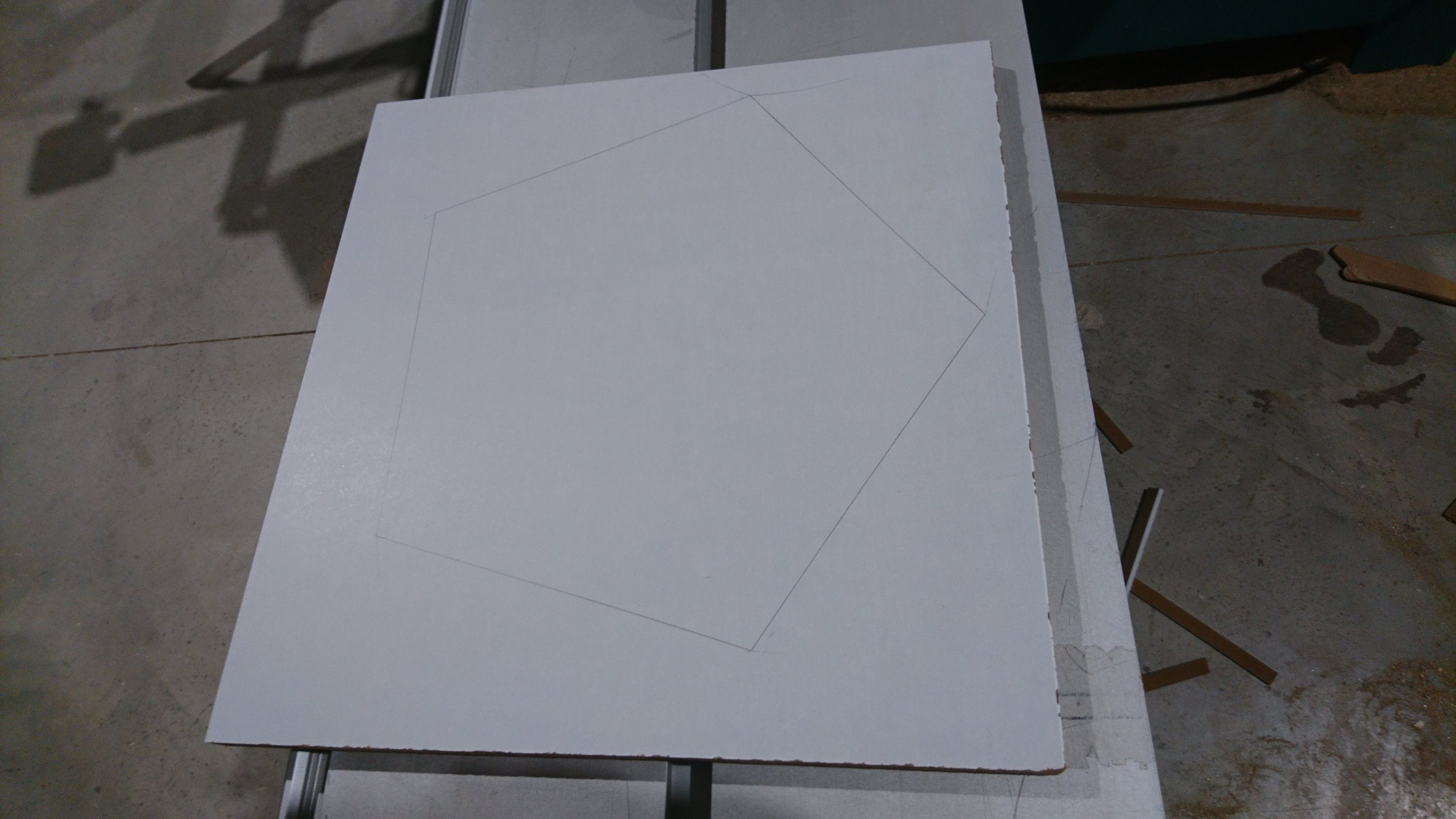 Jetzt haben wir zwei Trapeze, innen das Fertigmaß und außen das Vorschnittmaß.