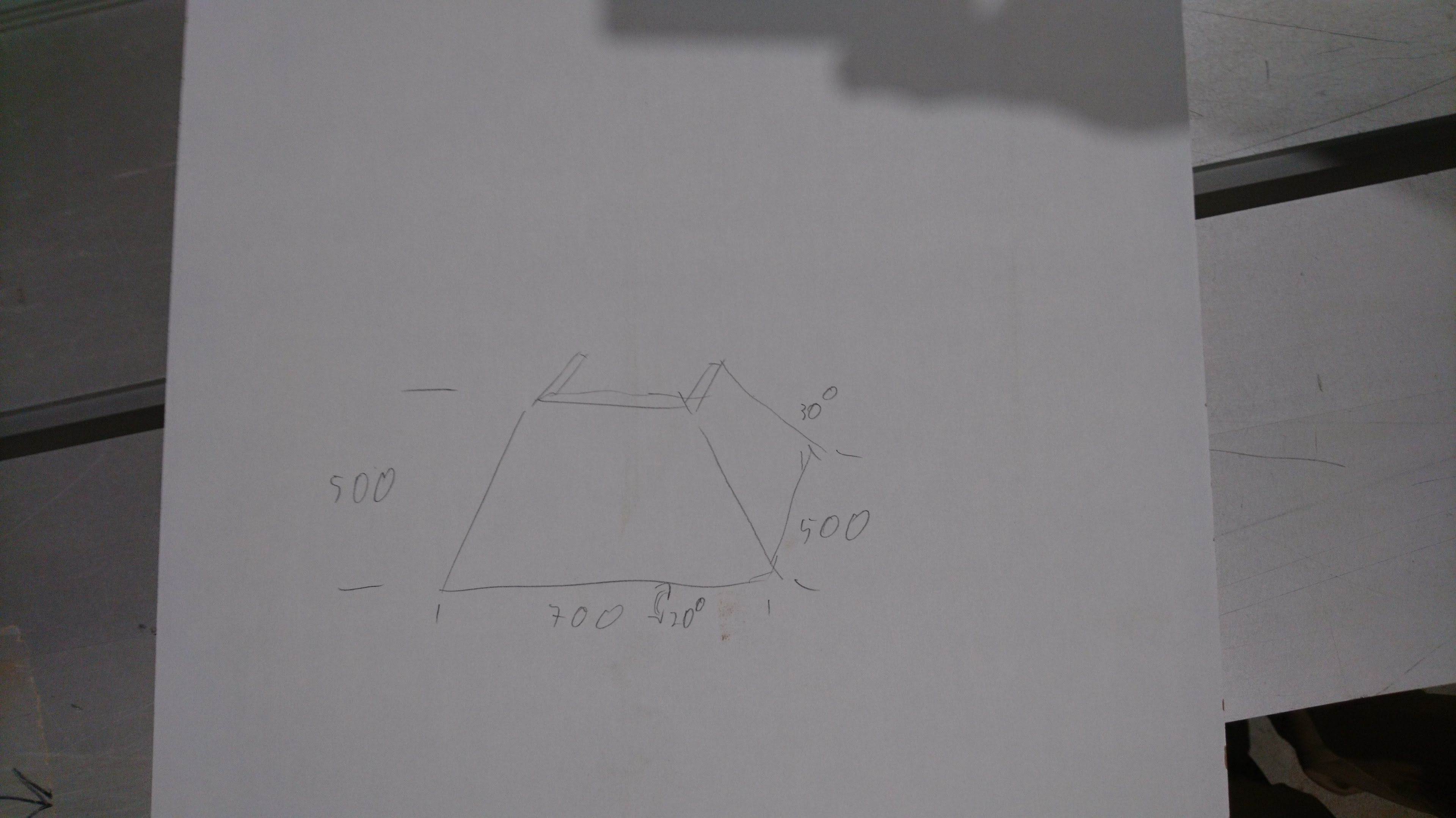 Die vordere Fläche ist unten 700mm breit und hat einen Winkel von 70°.