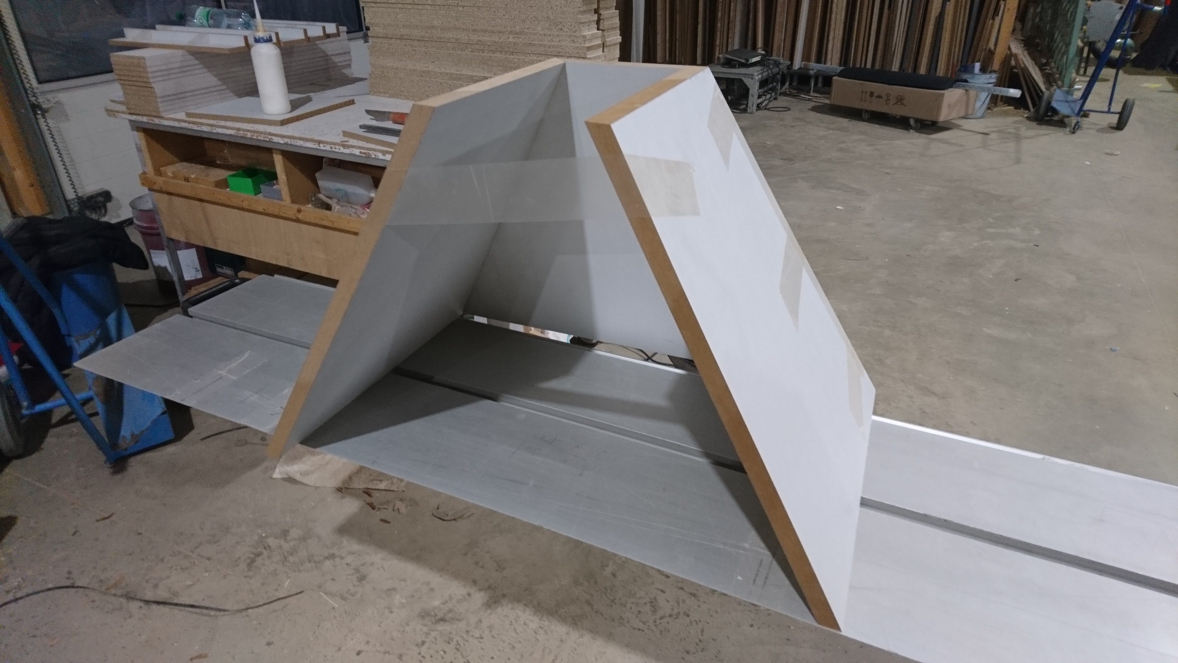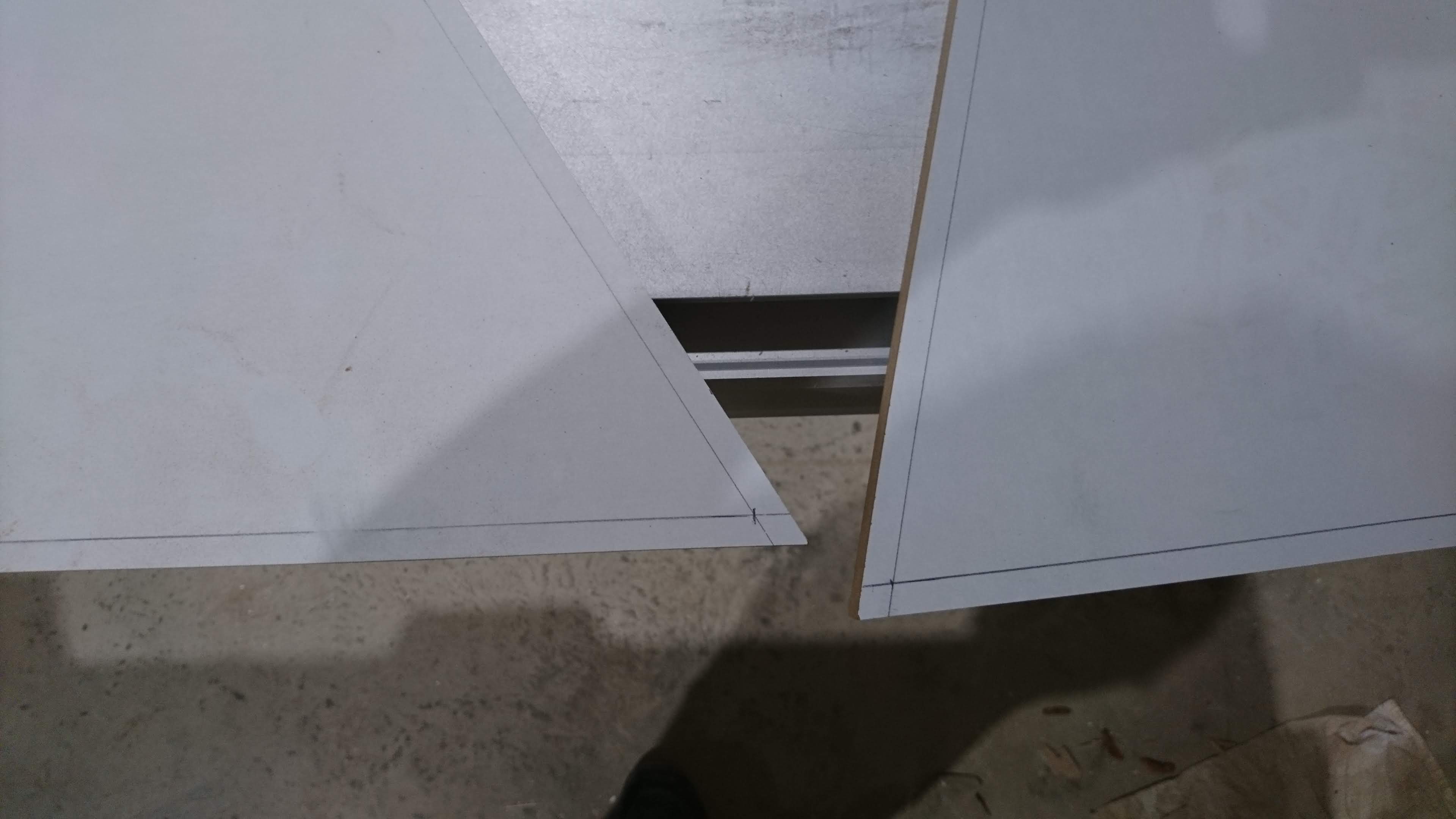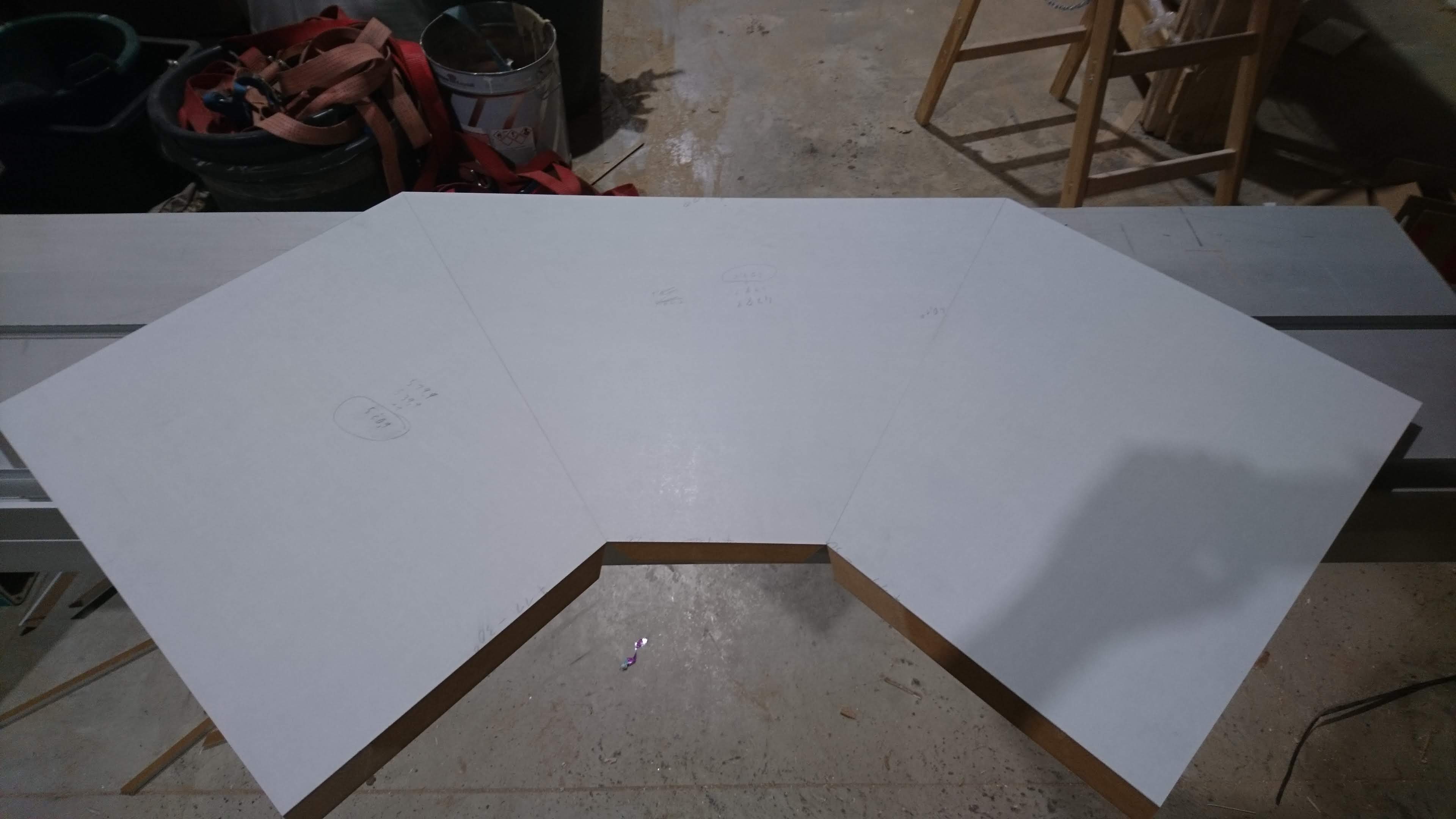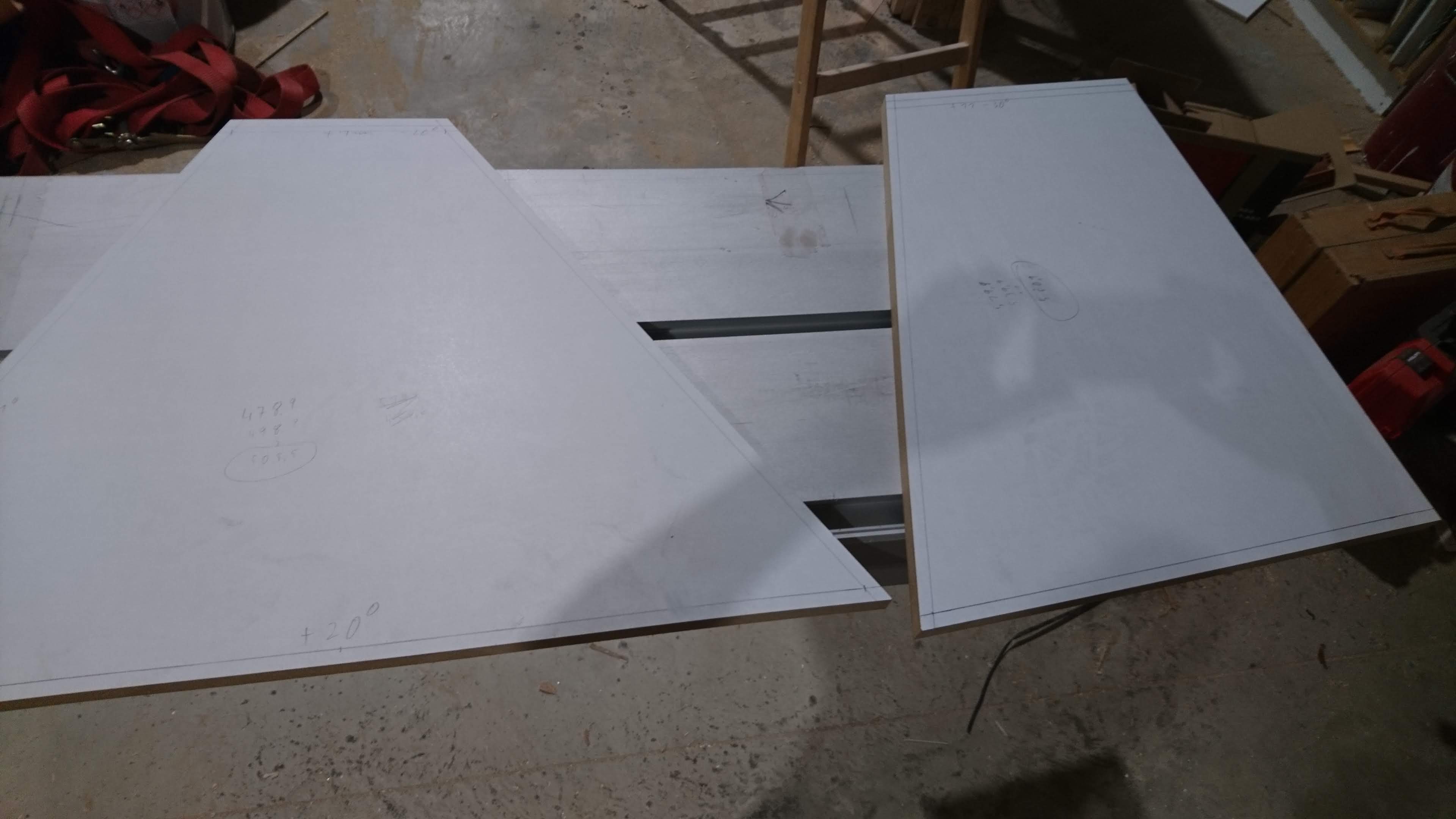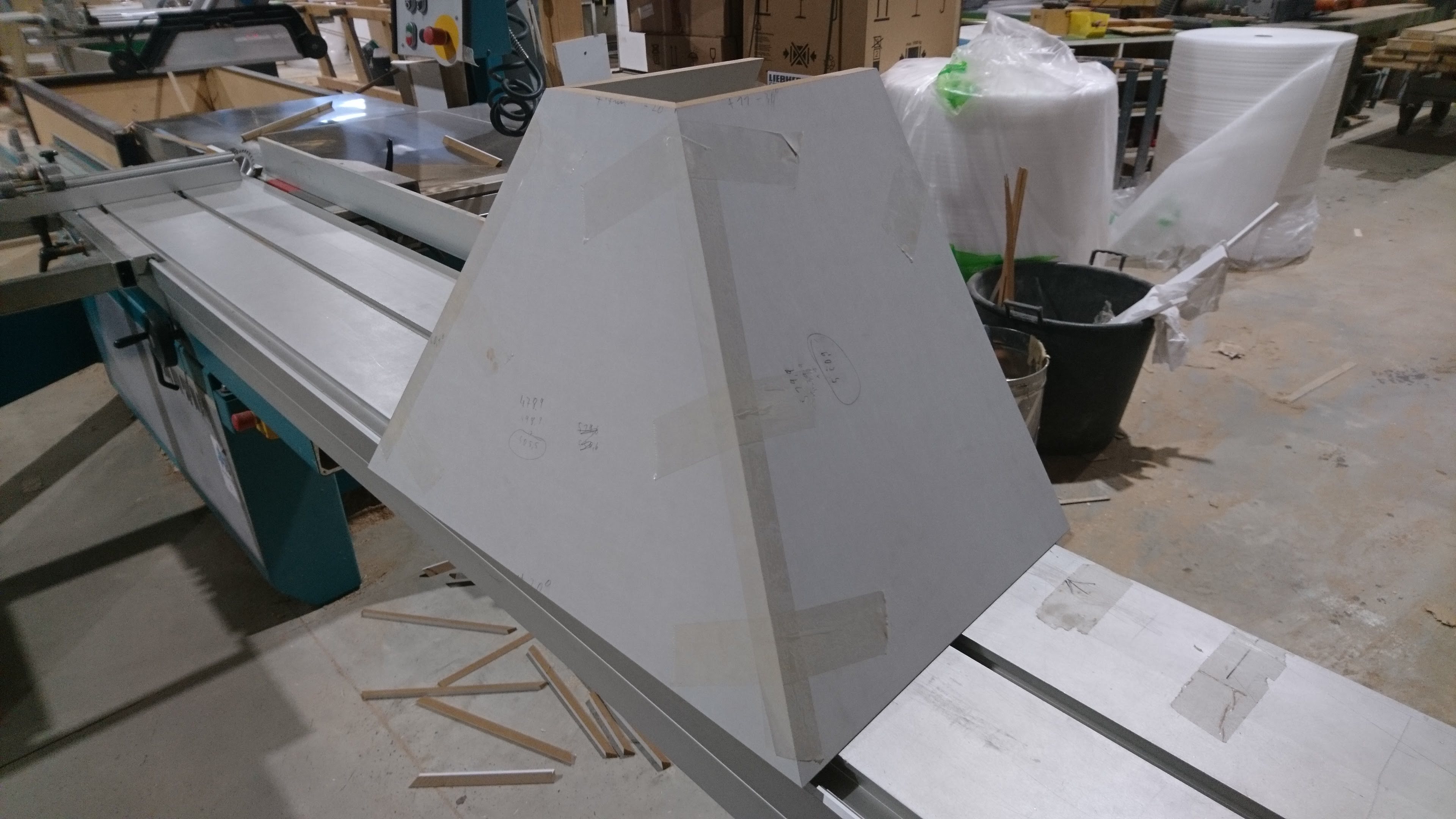 Kanten an denen unsere Verkleidung verleimt wird schneiden wir einen Winkel von 40,1° an.